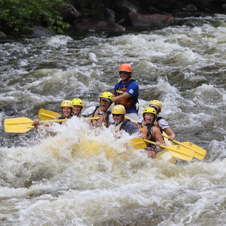 Wolf, our captain, welcomed our group of 6, a father with a teenage son and 2 daughters and us 2 seniors. He got us all fitted into sterilized life jackets and helmets and off we went on our bus to the top of the rapids. We learned that the upper section of the Pigeon River, that we reached within 15 minutes, boasts 12 Class III and 3 Class IV thrilling whitewater rapids. Wolf guided us safely down 5.5 miles of some of them using such names as Too Late, Vega Matic, Razor Blade, After Shave, and Lost Guide. To be sure, we all got the thrill of a lifetime. No Experience Necessary! Good, because I didn’t have any!