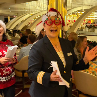 Shortly thereafter, we stepped into the gleaming atrium of the ms Koningsdam—polished brass, soft lighting, and the hum of embarkation energy. Every cruise has a tone. This one felt festive, elegant, and joyful: Christmas at sea.